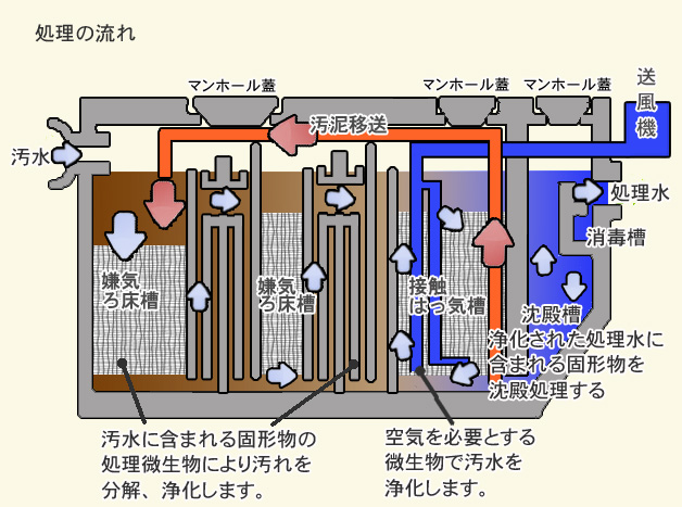 等の周辺機器、電気設備などを合わせたものを浄化槽といいます。